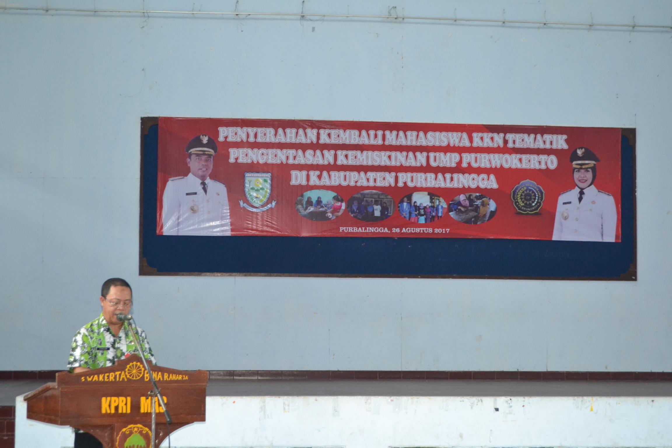 Purbalingga – Sebanyak 320 mahasiswa Universitas Muhammadiyah Purwokerto (UMP) selesai melaksanakan Kuliah kerja Nyata (KKN) tematik pengentasan kemiskinan di Purbalingga. Mereka ditempatkan selama 32 hari di 30 desa dalam tiga wilayah kecamatan masing-masing Kecamatan Pengadegan, Bojongsari dan Kecamatan Karanganyar. Penyerahan kembali mahasiswa KKN dilaksanakan oleh Staf Ahli Bupati Bidang Ekonomi Pembangunan, Yanuar Abidin, SH kepada…