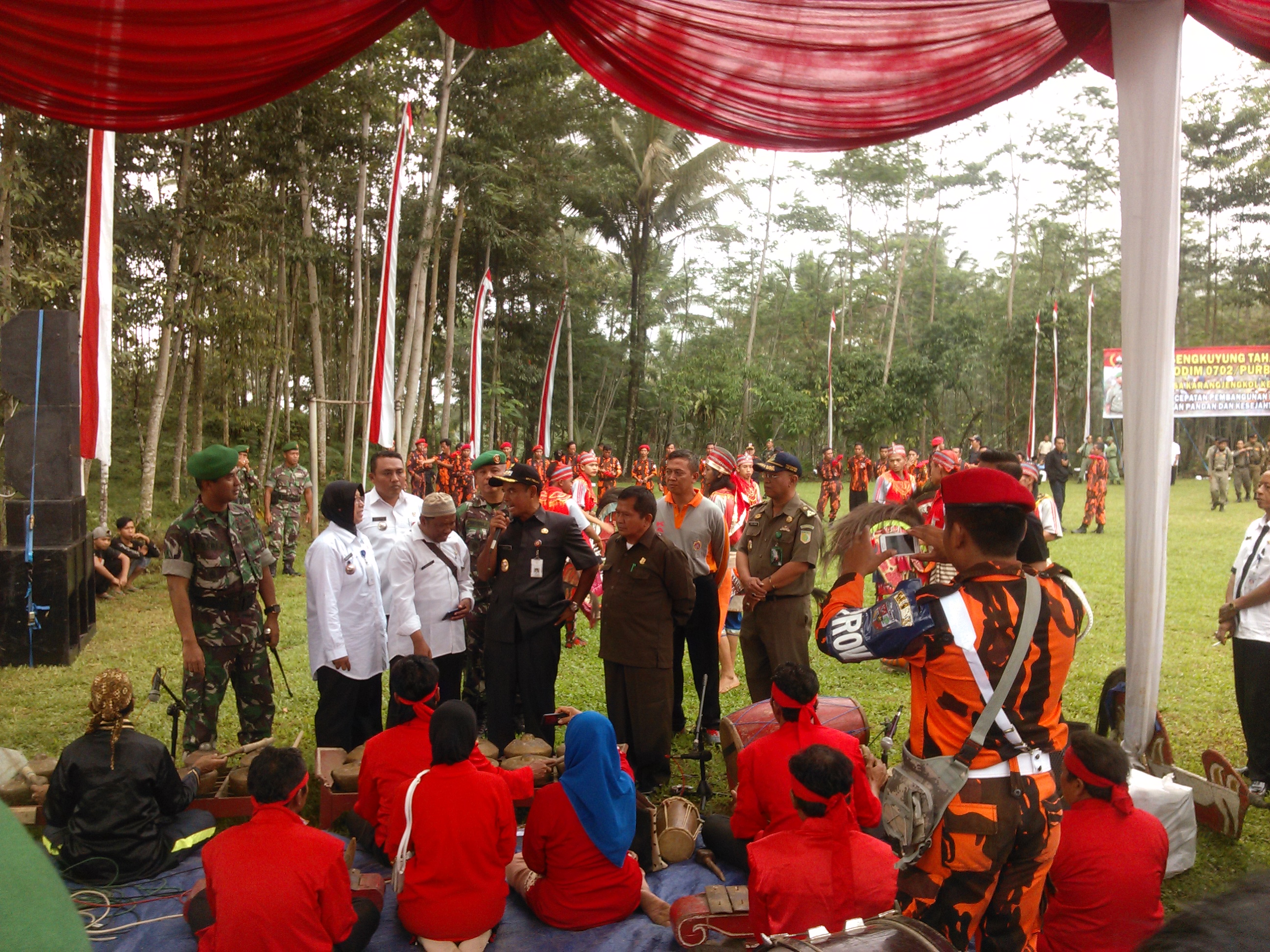 “Ingat, kemiskinan dan kesenjangan dapat menjadi sumber pemicu masalah sosial. Karena terbelit permasalan ekonomi dan kurang terpenuhi kebutuhannya, timbul kriminalitas, bahkan bisa saja ikut-ikutan suatu gerakan radikalisme yang mengiming-imingi materi berlebih,” demikian disampaikan Bupati Purbalingga H. Tasdi SH. MM. saat membacakan sambutan Gubernur Jawa Tengah, pada pembukaan TNI Manunggal Masuk Desa (TMMD) Sengkuyung Tahap III, di Desa Karangjengkol Kec. Kutasari, Rabu (27/9).