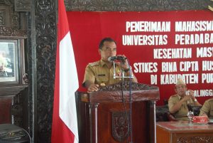 PURBALINGGA, INFO- Pemerintah Kabupaten (Pemkab) Purbalingga tak hentinya menerima mahasiswa Kuliah Kerja Nyata (KKN) dari berbagai Universitas baik negeri maupun swasta. Bupati menyampaikan akan menerima setiap pengembangan Sumber Daya Manusia (SDM) termasuk KKN dari Universitas manapun. Hal tersebut disampaikan Tasdi saat menerima mahasiswa KKN dari Universitas Peradaban Bumiayu Brebes dan Stikes Bina Cipta Husada Senin (29/1) di Pendapa Dipokusumo Purbalingga.